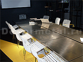 Парты: сталь нержавеющая, с поверхностью Deco и корзинами из перфорированного металла.