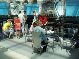 ОбъектыВыставка "Мосшуз", стенд VS-shoes Полки перфорированные, из зеркальной нержавейки.